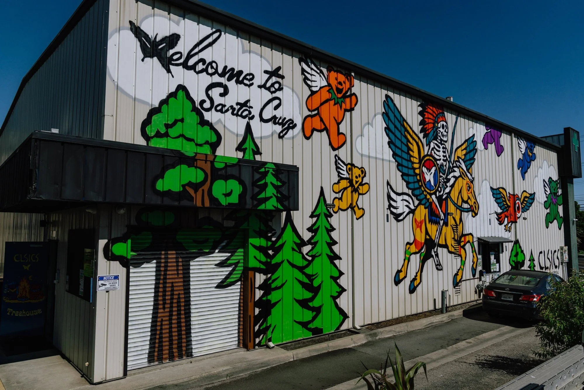 Treehouse’s newest mural, created by legendary artist BB Bastidas, bursts with life and color—a vibrant tribute to Santa Cruz’s Grateful Dead roots. Dancing bears take flight, skeleton riders cruise across psychedelic skies, and every brushstroke channels the spirit of freedom, creativity, and connection. Though the Dead only played one official concert in Santa Cruz County—a legendary 1983 show at the Watsonville Fairgrounds that drew over 11,000 fans—their presence here has always loomed large. From that historic night to the world’s largest archive of Dead history at UC Santa Cruz, the band’s legacy continues to ripple through the coast. This mural carries that energy forward: a celebration of art, cannabis, and the community that makes Treehouse thrive.
